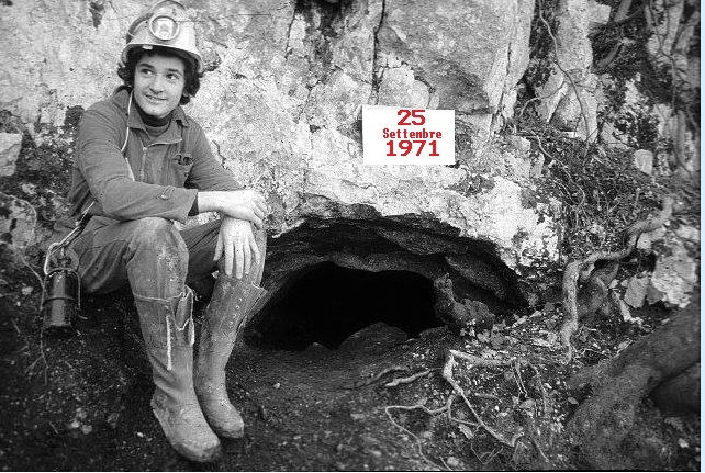 Era sabato 25 settembre 1971 quando la spedizione da me guidata, dopo avere verificato anche altre piccole aperture, si concentrò sul buco principale trovato da Rolando Silvestri che si era presumibilmente aperto per lo scivolamento del terreno superficiale di riporto, essiccato dalle elevate temperature di quell’estate. Il foro sembrava una tana con un’entrata grande circa come un pallone di calcio e, dopo averlo liberato a mani nude dalla terra e sassi che ne ostruivano l’angusto ingresso, constatammo che sembrava veramente inoltrarsi direttamente all’interno della montagna.