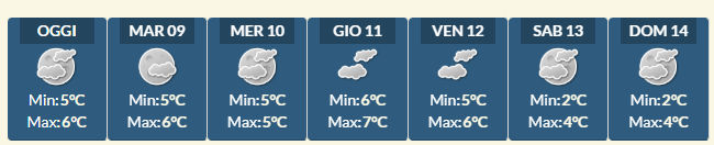 Le temperature oscillano tra i 6° come massima e i 5° come minima.