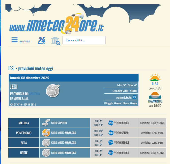 Meteo di oggi, lunedì, 08 dicembre 2025 a Jesi (Ancona):
