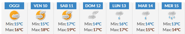 Le temperature oscillano tra i 16° come massima e i 15° come minima.