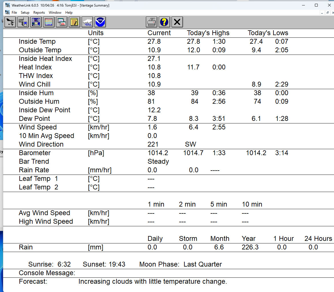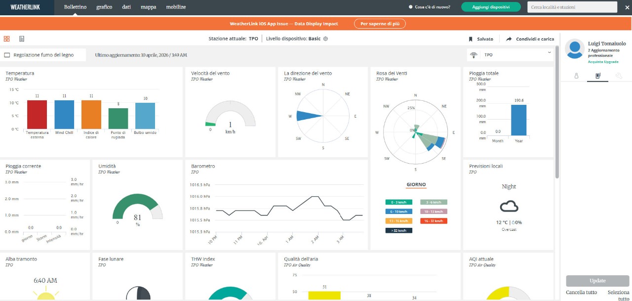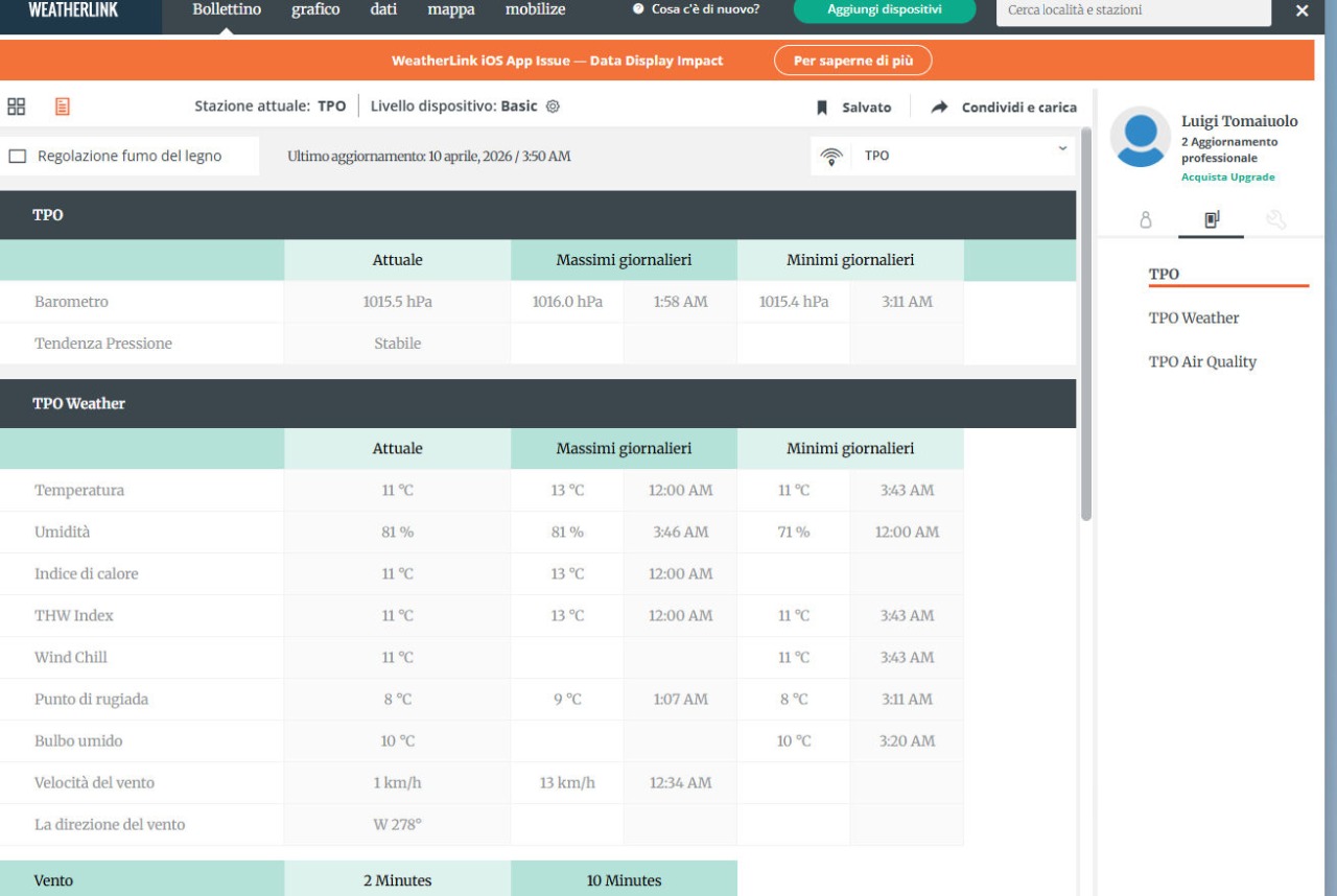 STAZIONE METEO DAVIS PLUS 2 BUON 2026 - Jesi2 10 Aprile ore 03 :21 Gli aggiornamenti saranno saltuari- Per vedere i dati real time cliccare s ui vari link. Sito Meteo Davis Plus PER AGGIORNARE CLICCA SUL SOTTOSTANTE LINK:https://www.weatherlink.com/bulletin/ba07d34c-c513-4b49-ba7b-5b6874047ff8 Jesi ore 03 50 del 10 Aprile 2026
