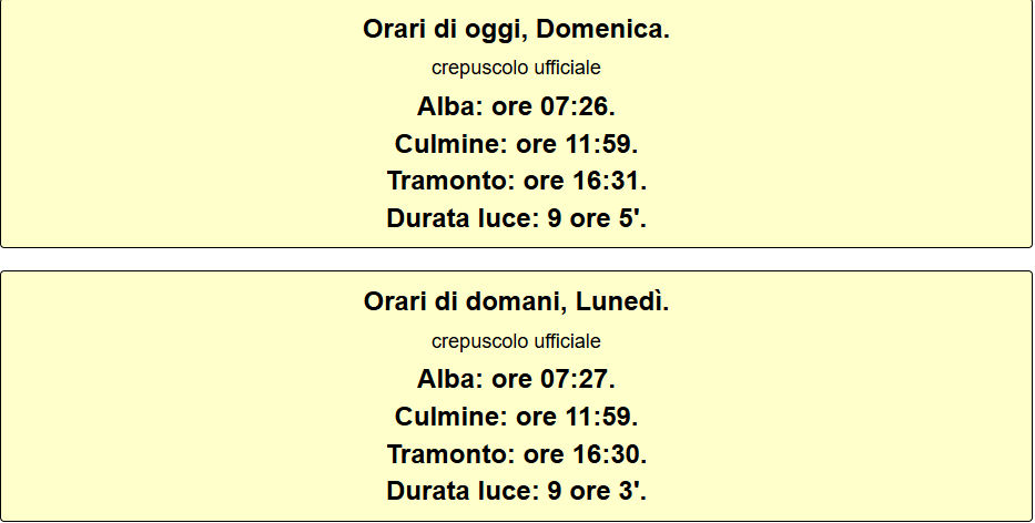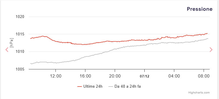 | 26/11/2025 | 1.9 | 5.6 | 10.8 | 73 | 89 | 94 | 2.60 | 8.6 | 0.1 | W | 1007.3 | 53 | 0.1 | Sì | |||