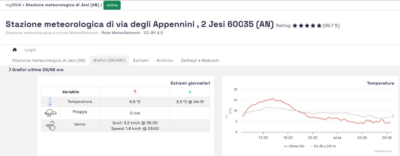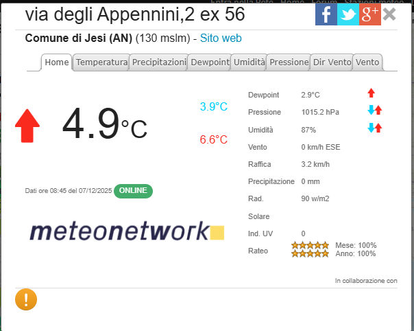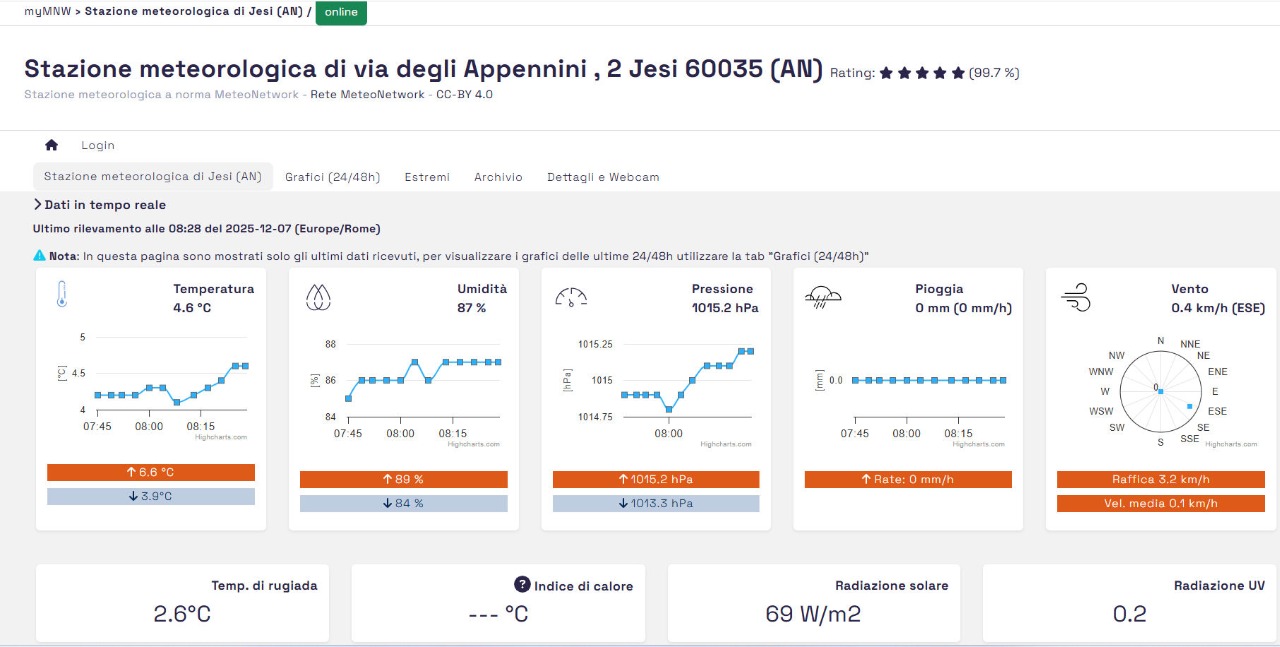STAZIONE METEOMC041 - METEONETWORK - https://www.meteonetwork.it/rete/livemap Jesi 07 Dicembre ore 08 52