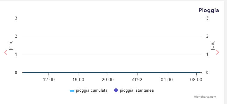 | 30/11/2025 | 1.7 | 6.1 | 13.2 | 45 | 69 | 85 | 0.00 | 10.1 | 0.8 | ENE | 1015.5 | 101 | 0.3 | Sì | |||