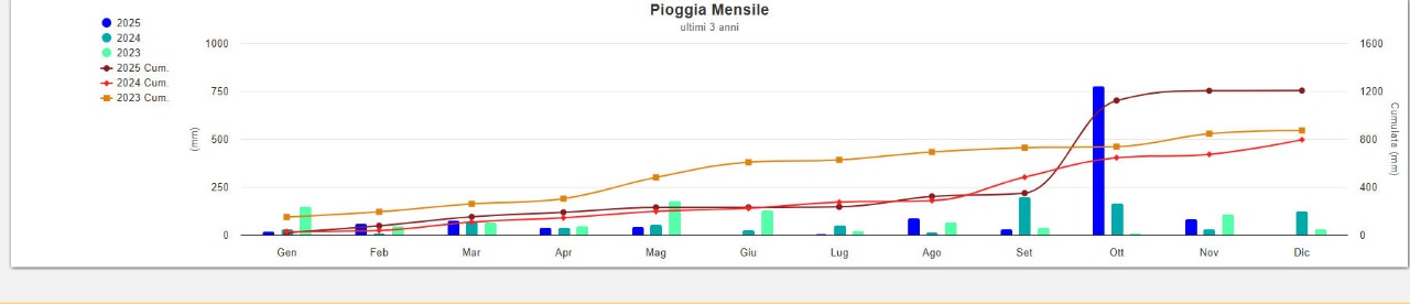 | 29/11/2025 | 2.6 | 7.8 | 14.3 | 50 | 61 | 71 | 0.20 | 10.1 | 0.6 | WSW | 1013.8 | 116 | 0.3 | Sì | |||
