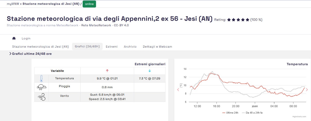 PER AGGIORNARE CLICCA SUL SOTTOSTANTE LINK https://my.meteonetwork.it/station/mrc041 stazione di via degli Appennini,2 ex 56 - Jesi (AN) Rating: (100 %)Stazione meteorologica a norma MeteoNetwork - Rete MeteoNetworkC-BY 4.0