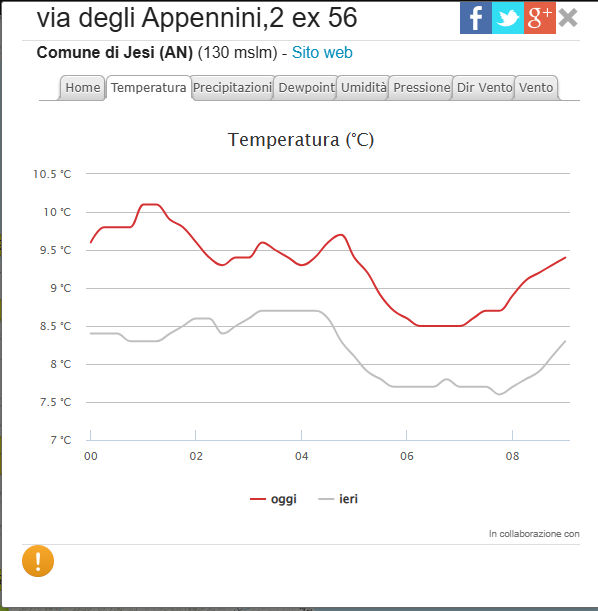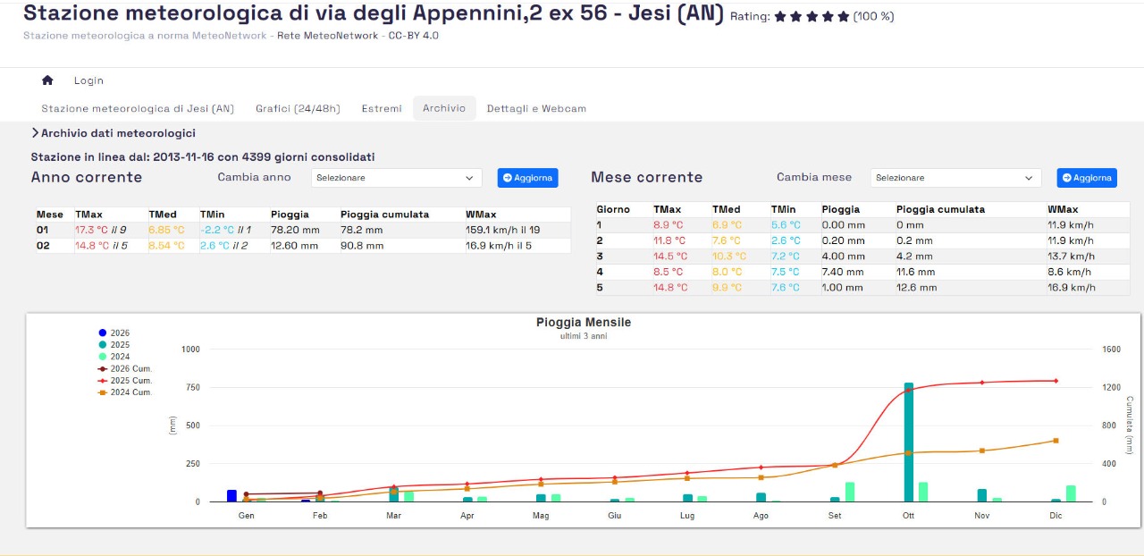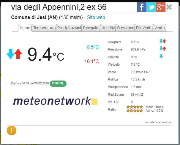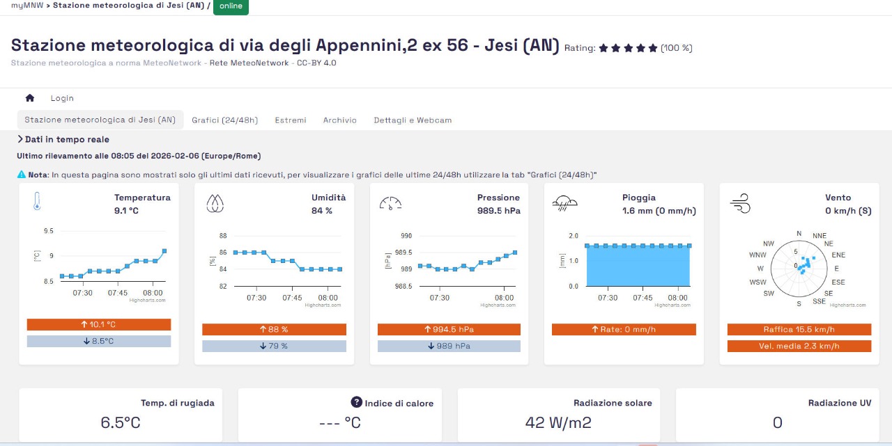 PER AGGIORNARE CLICCA SUL SOTTOSTANTE LINK https://my.meteonetwork.it/station/mrc041 stazione di via degli Appennini,2 ex 56 - Jesi (AN) Rating: (100 %)Stazione meteorologica a norma MeteoNetwork - Rete MeteoNetworkC-BY 4.0BY 4.0